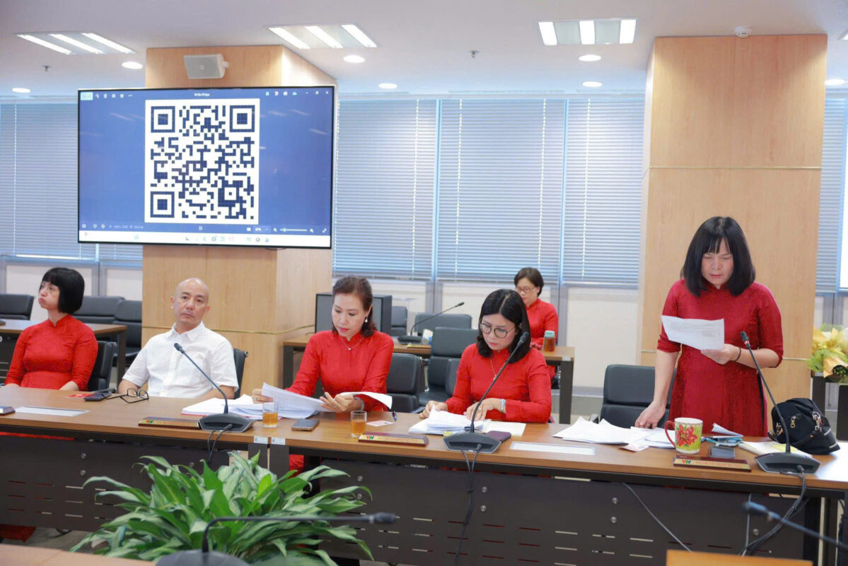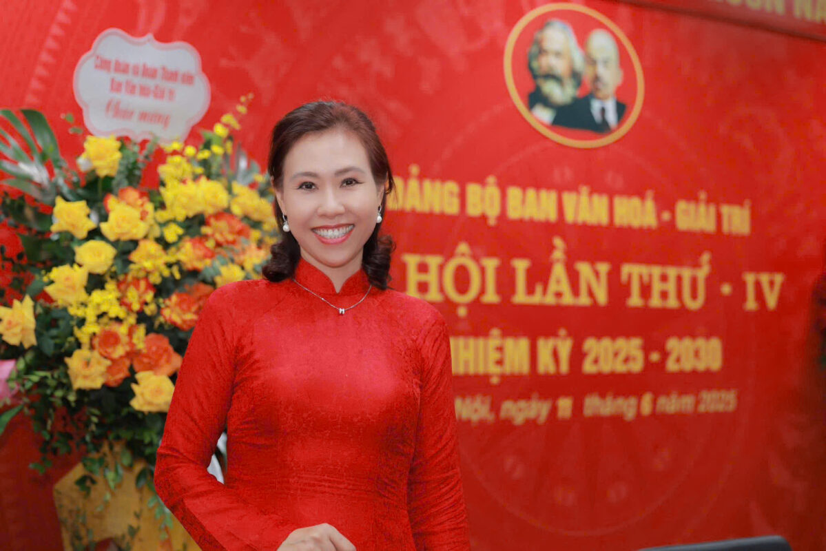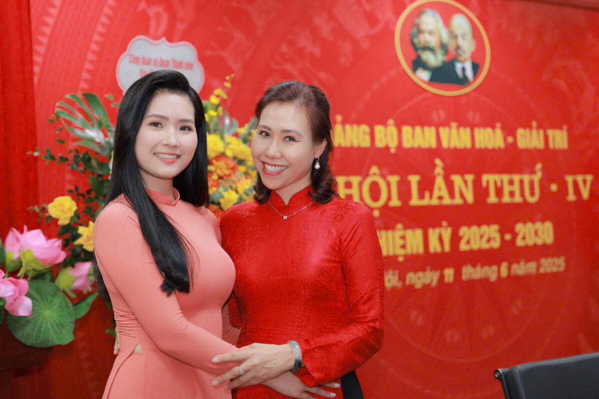 Trong văn hóa Việt, màu đỏ tượng trưng cho may mắn, lòng nhiệt huyết và tinh thần đoàn kết. Chính vì vậy, việc NTK Đức Hùng lựa chọn gam màu này cho loạt áo dài lụa càng góp phần làm nổi bật tinh thần sự kiện. Trên sóng VTV3, các chị em công tác tại đài xuất hiện trong tà áo dài đỏ rực, tươi cười, duyên dáng chụp hình tổng kết ngày Đại hội Đảng bộ, tạo nên một khung hình rực rỡ, trang nghiêm mà vẫn đầy cảm xúc.