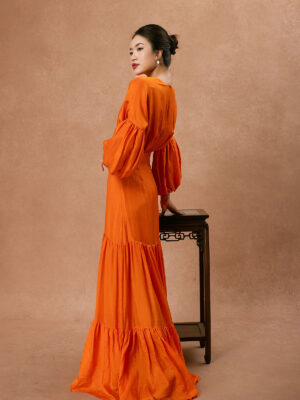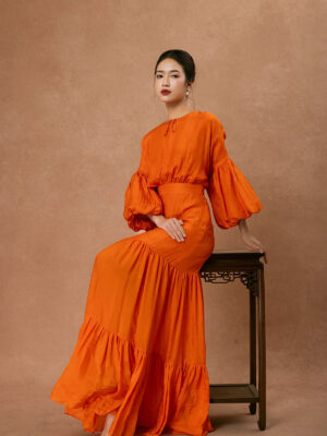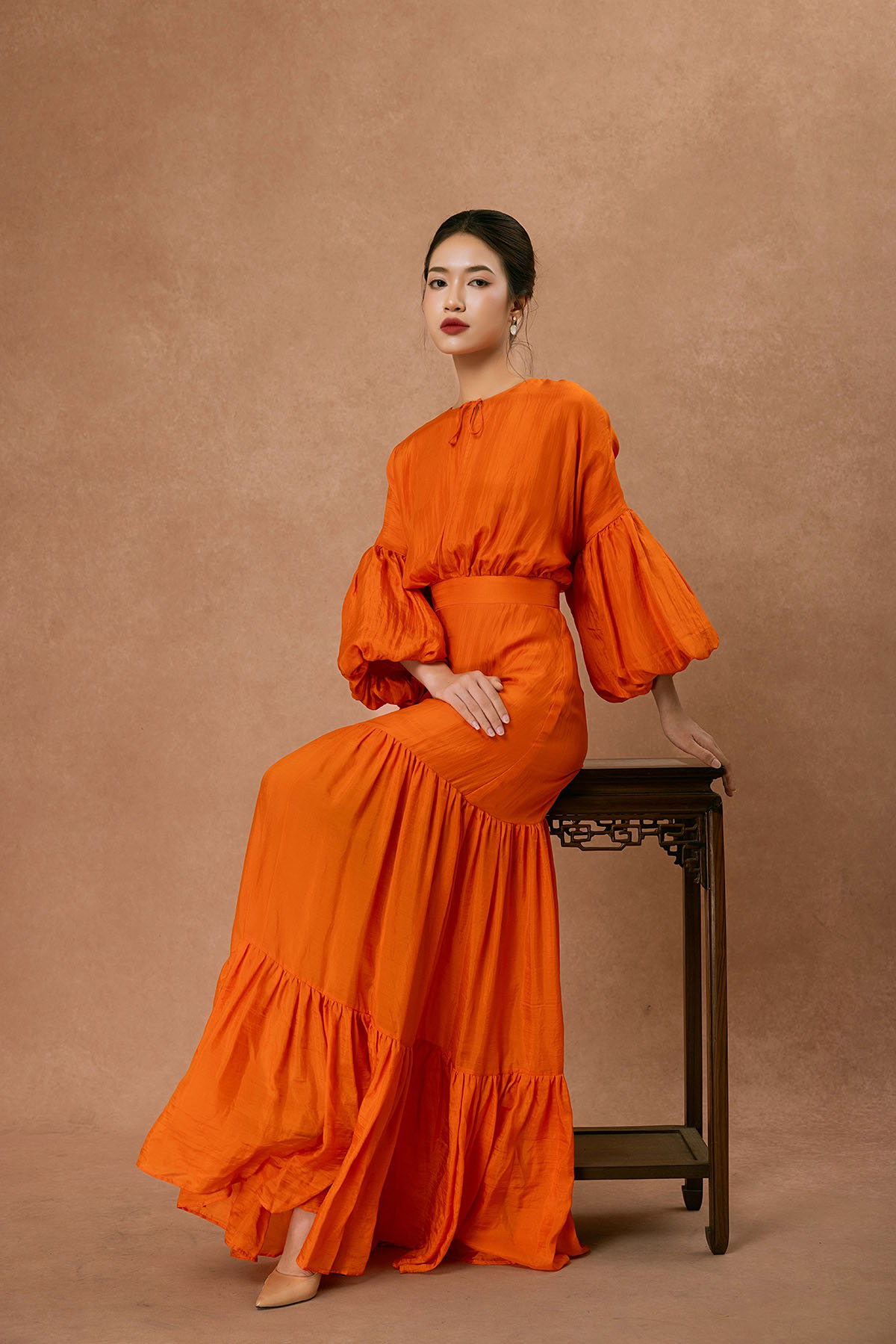 - Chi tiết đặc biệt: Cổ tròn nhún, tay phồng đèn lồng