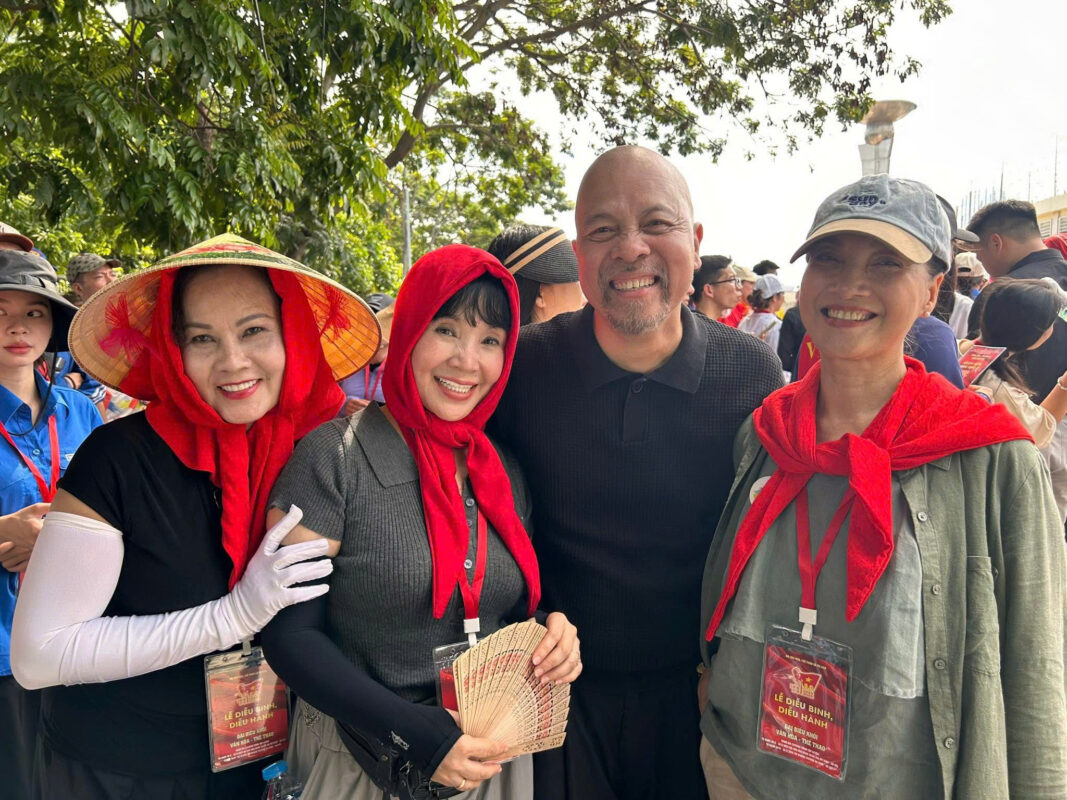 NSƯT – nhà thiết kế Đức Hùng chia sẻ với phóng viên VietNamNet: “Cảm giác đầu tiên ùa về là ký ức cách đây 30 năm, khi tôi mới hơn 20 tuổi, được vinh dự tham gia diễu hành trong dịp kỷ niệm 50 năm Quốc khánh 2/9. Hồi ấy, tôi và các nghệ sĩ như NSND Lan Hương, NSND Lê Khanh… dậy từ 2 giờ sáng để tập trung, lòng náo nức, hồi hộp, say mê tập luyện.