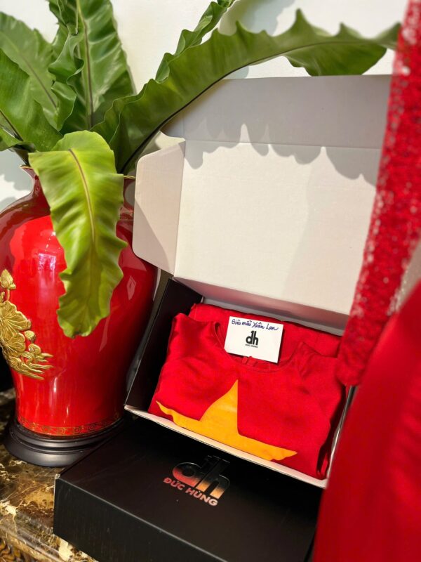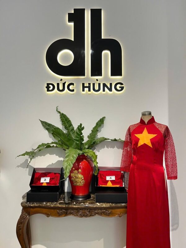 Nhân dịp trong không khí thiêng liêng kỷ niệm 80 năm Quốc khánh 2/9, nhà thiết kế Đức Hùng đã chuẩn bị những mẫu áo dài đặc biệt lấy cảm hứng từ Quốc kỳ Việt Nam: cờ đỏ sao vàng