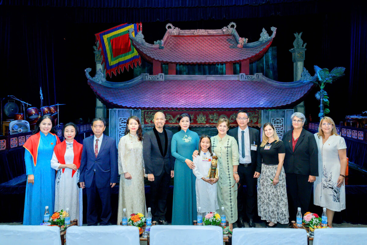 NTK Đức Hùng đại diện đón tiếp cũng như giới thiệu cho hai Phu nhân về loại hình nghệ thuật sân khấu dân gian truyền thống của Việt Nam, trong không khí đầy hữu nghị.