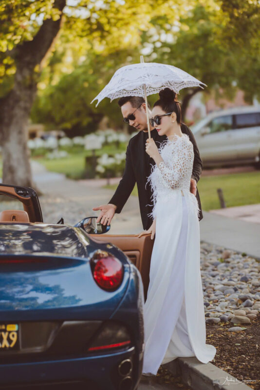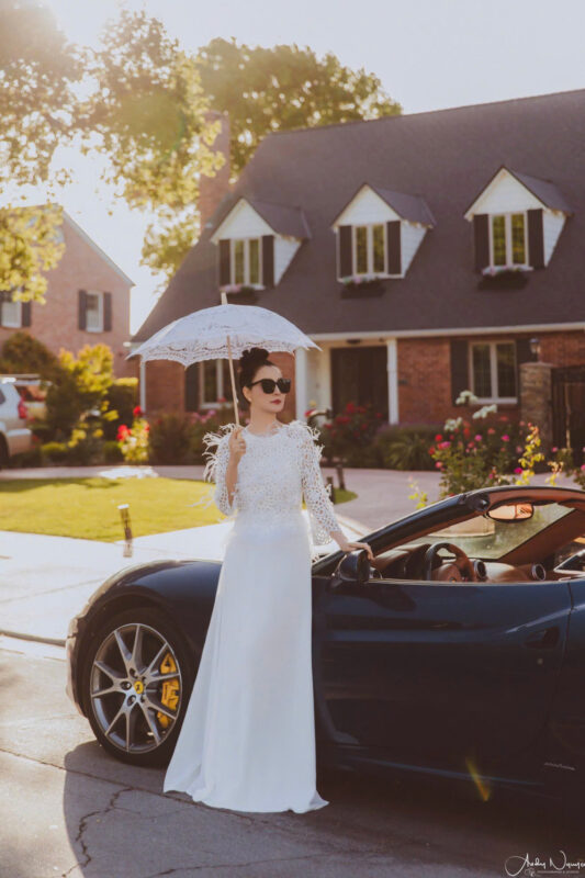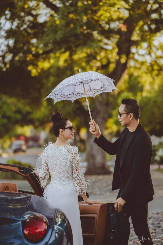 Xuất hiện trong tà áo dài đặc biệt này là diễn viên trẻ Mai Vân Trang – người luôn được biết đến với hình ảnh trẻ trung, tinh tế. Khi phối hợp cùng chiếc ô ren trắng mang âm hưởng châu Âu, Mai Vân Trang mang đến một tổng thể hình ảnh vừa cổ tích, vừa đậm chất thời trang đương đại. Sự kết hợp này tạo ra một hình tượng giao thoa giữa vẻ đẹp Á Đông duyên dáng và tinh thần tự do, phóng khoáng của văn hóa phương Tây, là minh chứng cho sự linh hoạt và khả năng thích nghi của tà áo dài trong bối cảnh toàn cầu hóa.