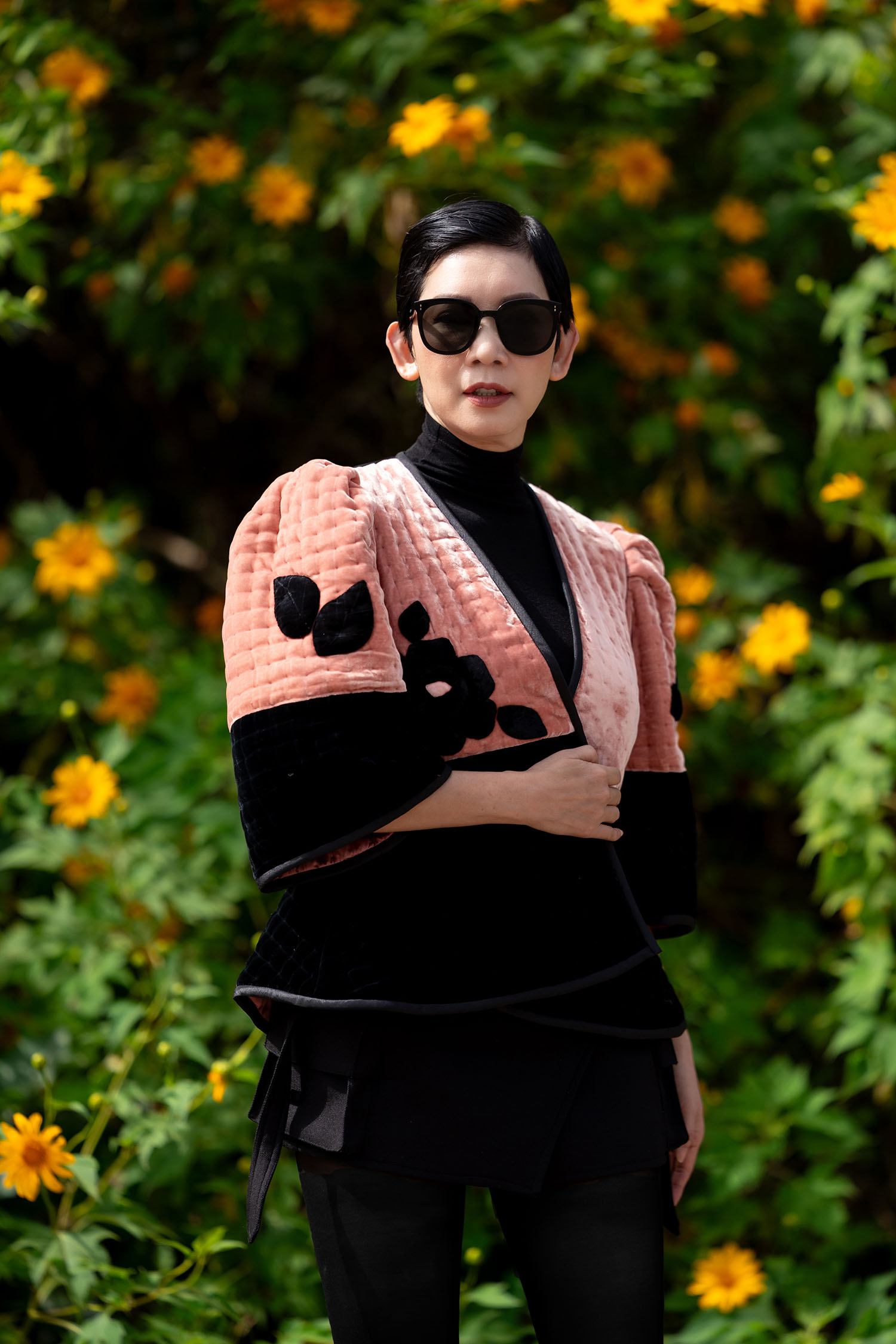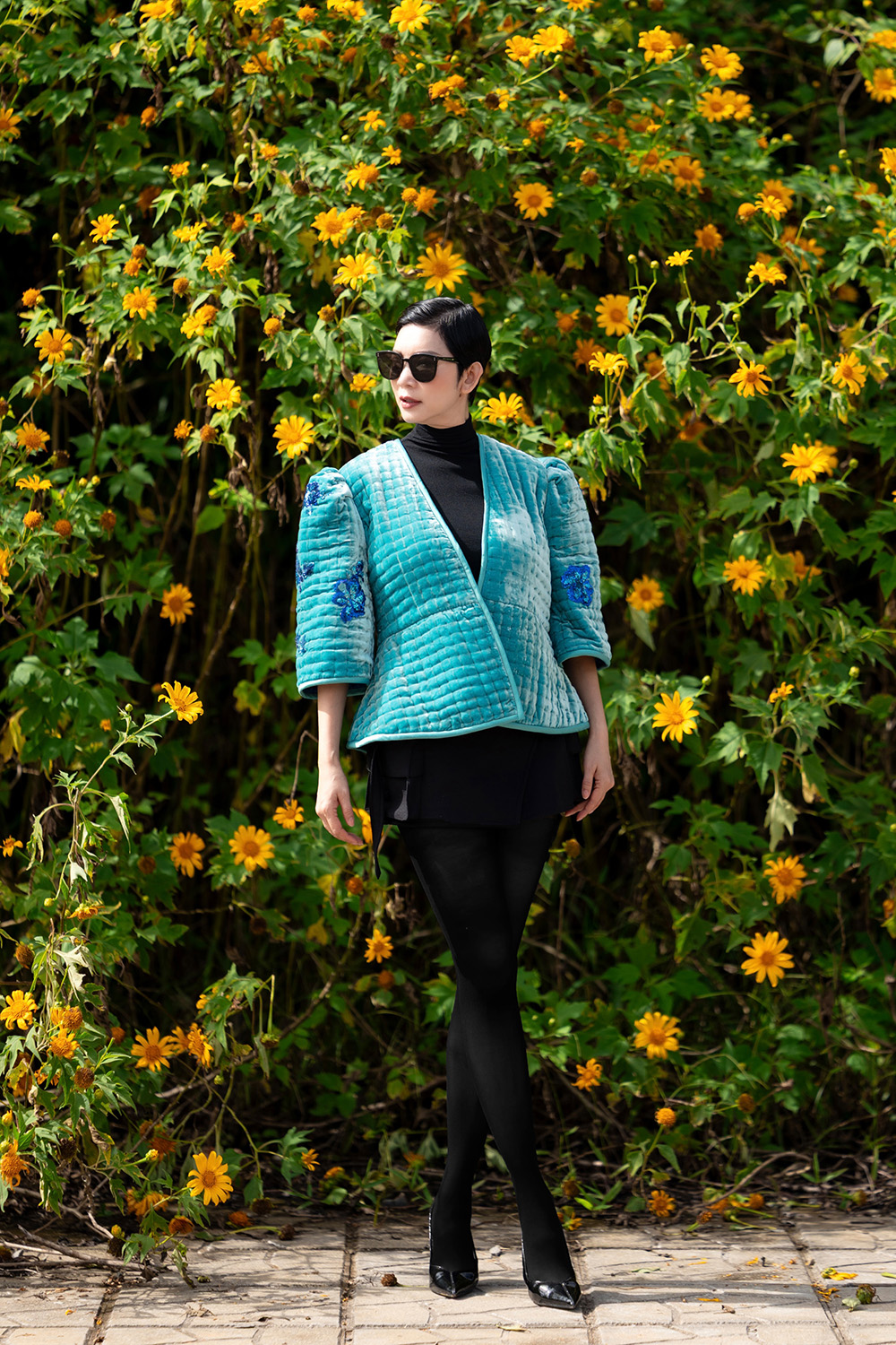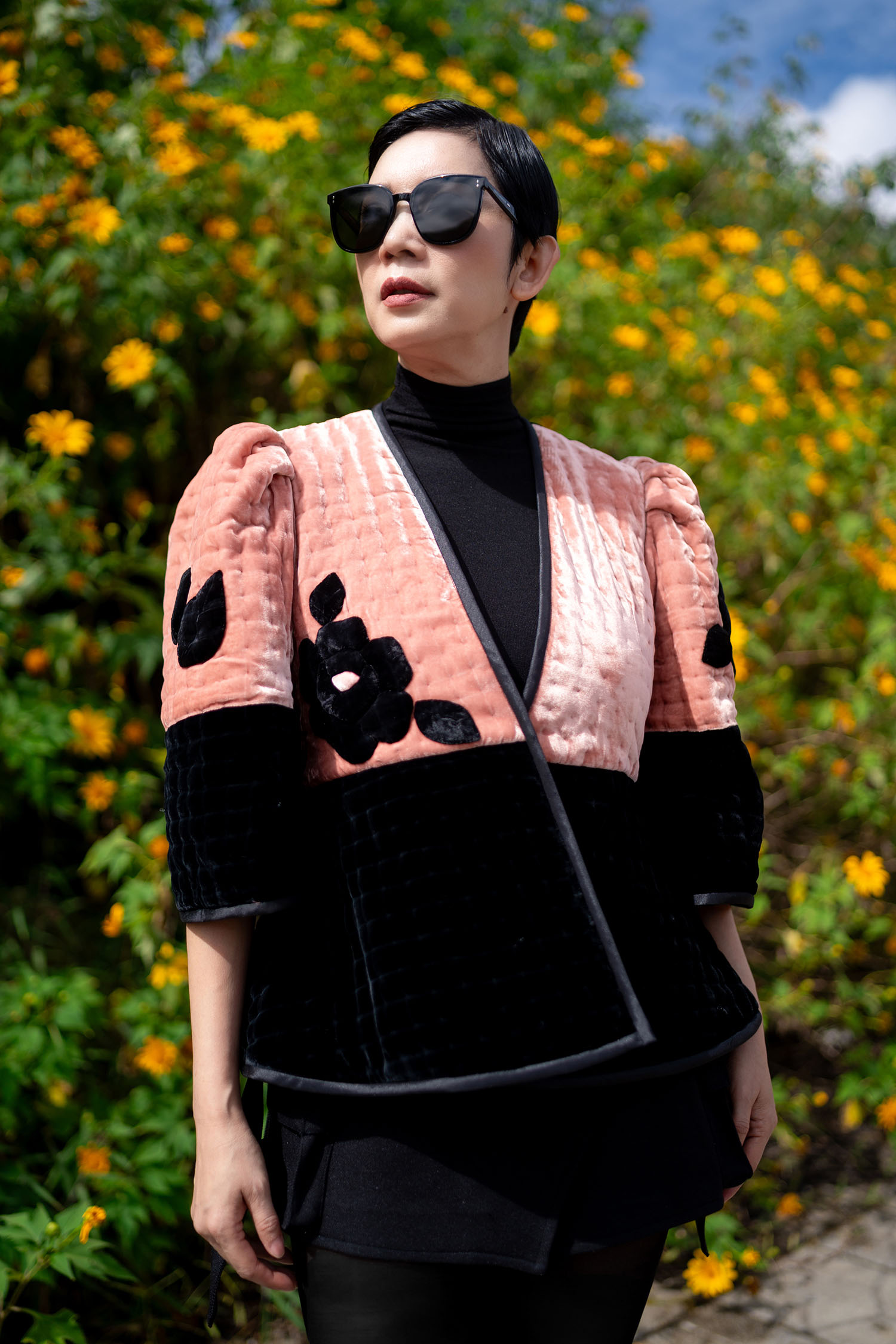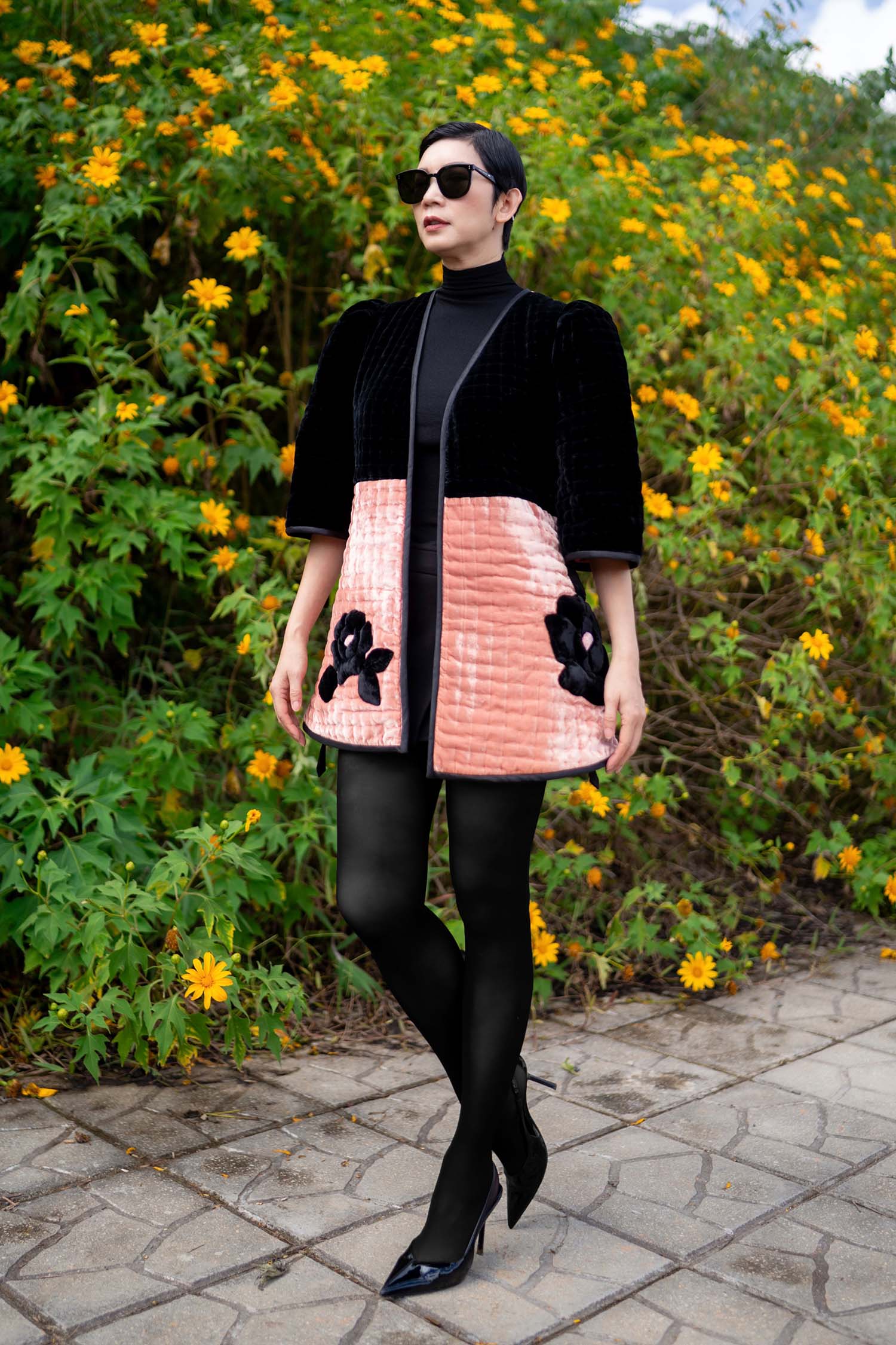 Áo Khoác Nhung The Đắp Hoa