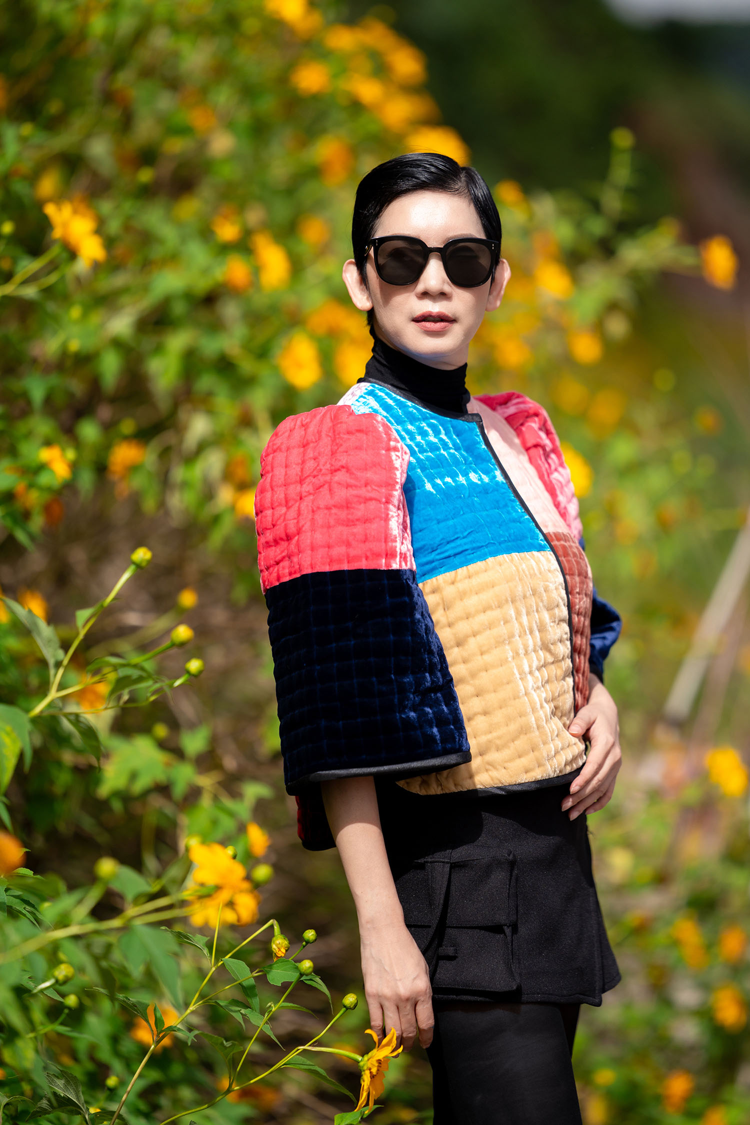 Áo Chần Bông Phối Màu Đắp Hoa Nổi