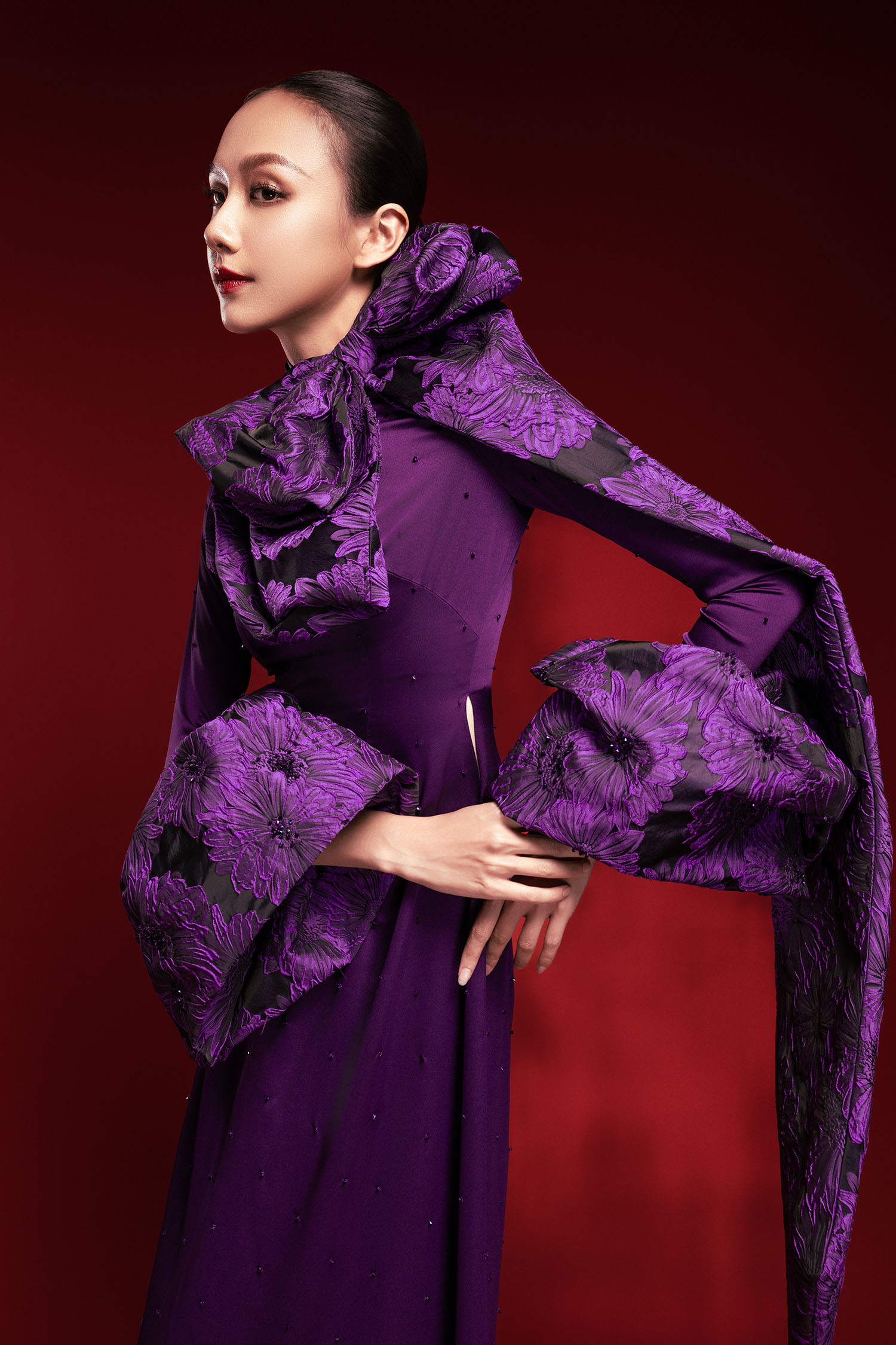 Áo Dài Lụa Phối Nơ Vải Gấm Hoa
