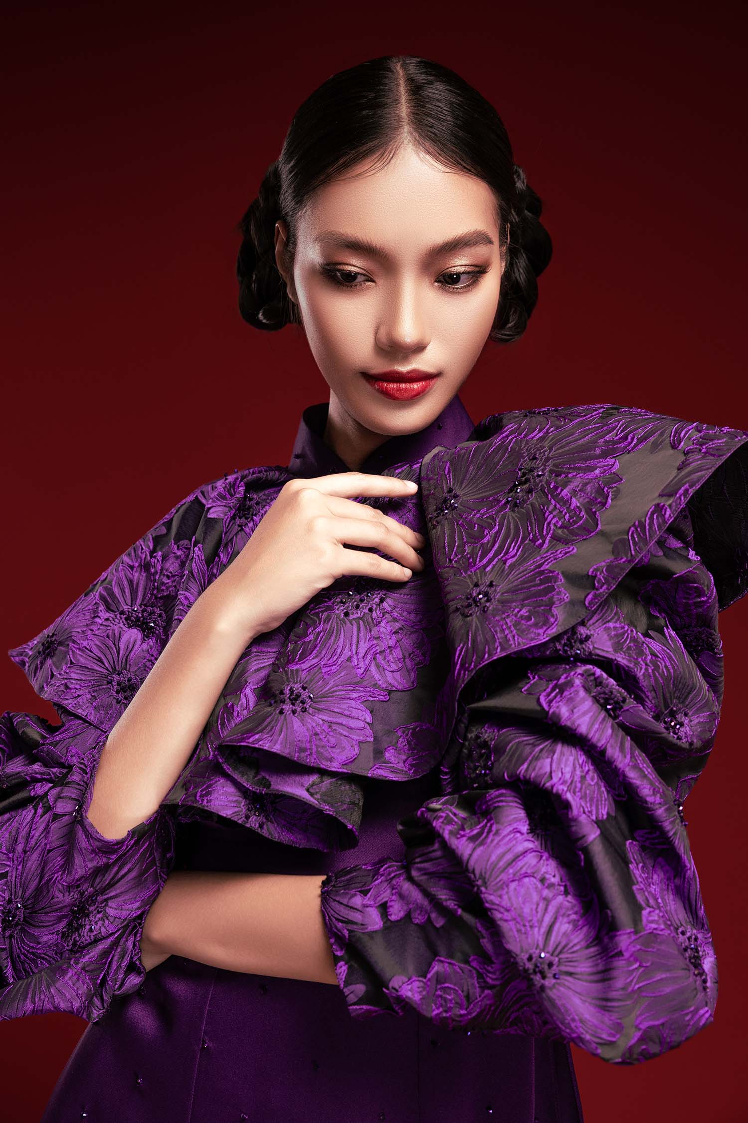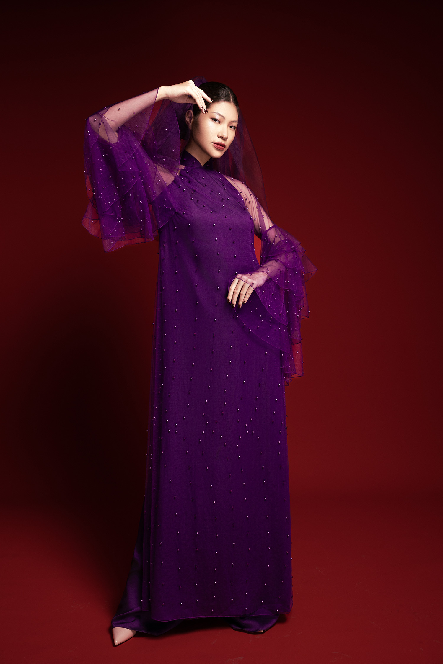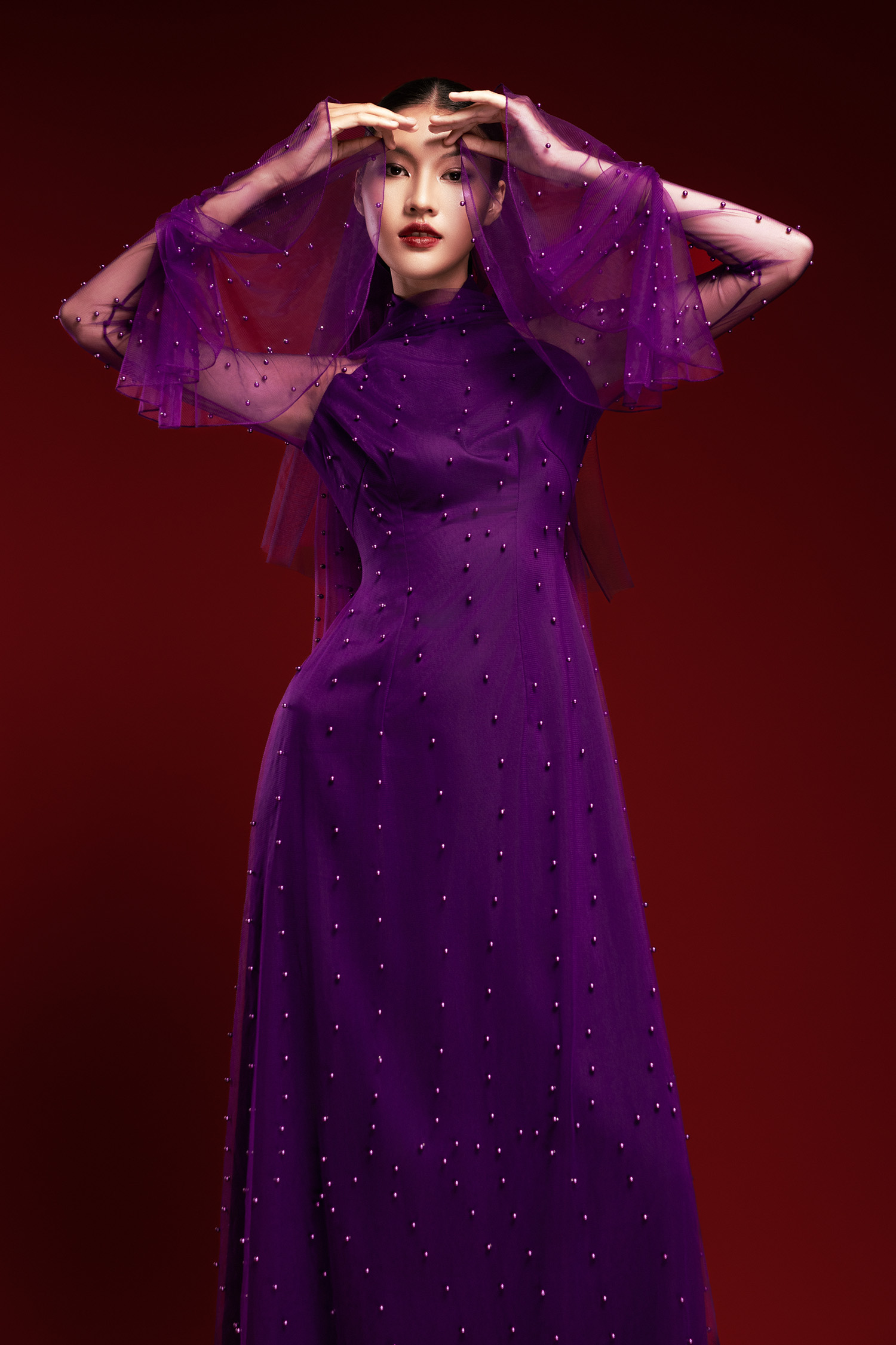 Áo Dài Nhung The Tím Tay Đèn Lồng